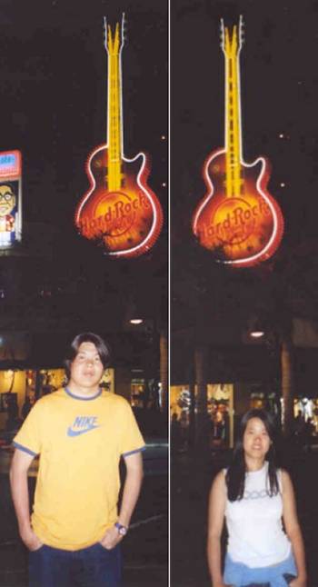 Jon and ST in front of Hard Rock Cafe, Surfers Paradise.
